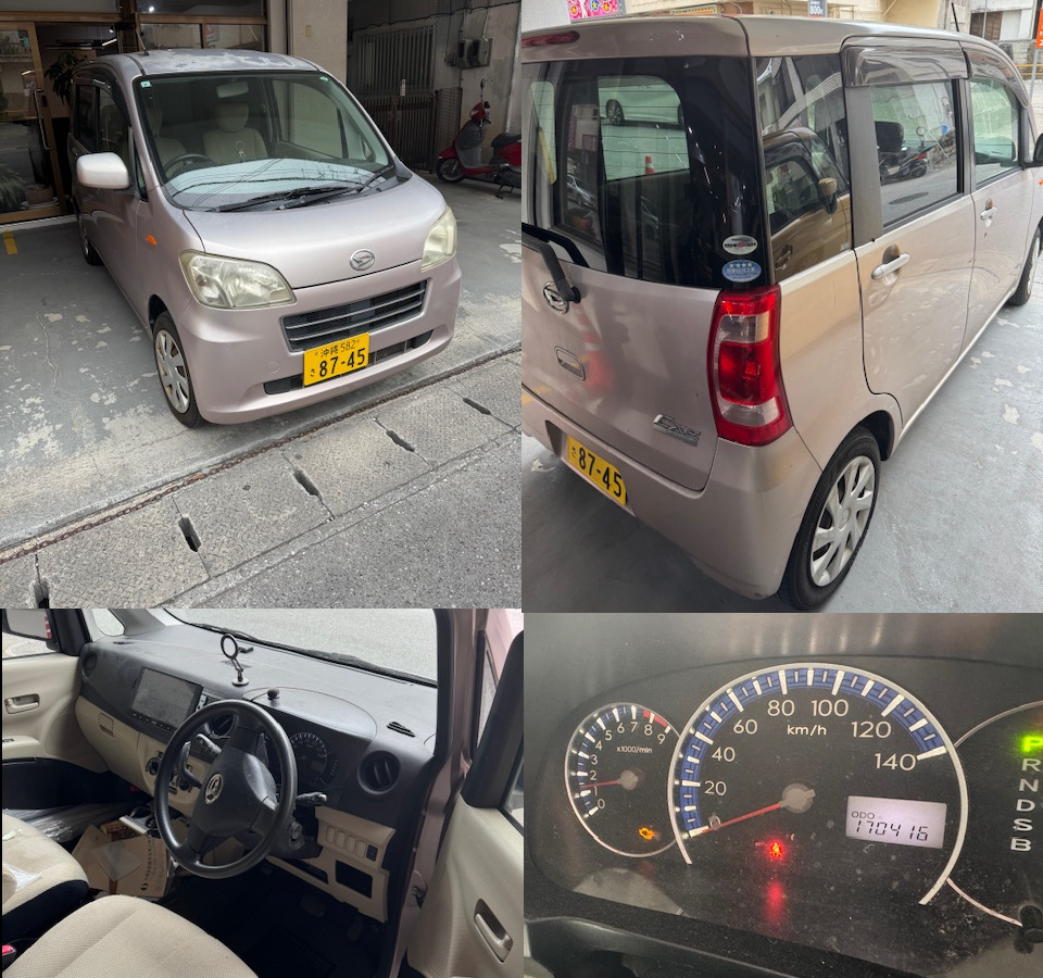 平成23年式タント、車検は今年の9月までで走行距離17万キロです。今まで足として使ってましたが新しい車を購入したため手放します。車は那覇市前島に昼間はあるので見れます。不具合はありませんが、エンジンチェックランプ点灯したり消えたりします。車やに持って行ったら排ガスセンサーの交換と言われたのですが、問題ないのでそのまま乗ってまました。