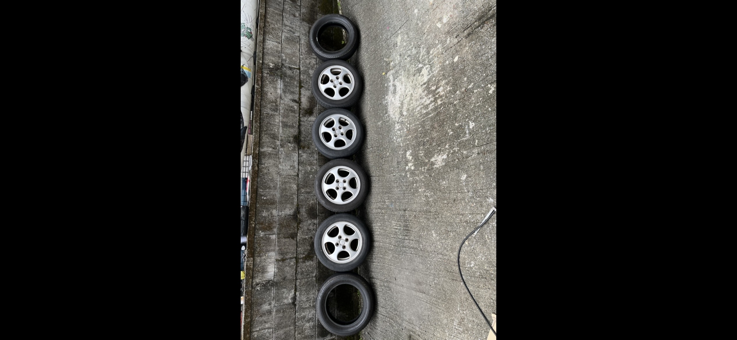 軽自動車アルミホイール山ありタイヤ4本と(バリ山タイヤ2本付き)(タイヤメーカー6本ブリヂストン)155/65/R14 ホイールピッチ100㍉ 沖縄市子供の国近く ※ノークレーム・ノーリターン